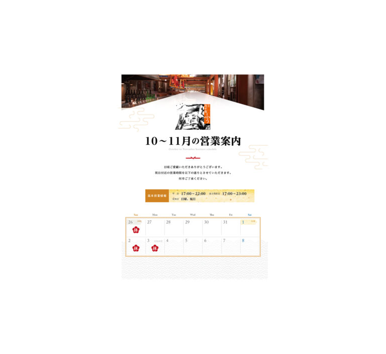 11月 祝日付近営業のお知らせ